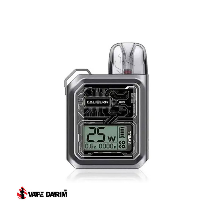 پاد ۲۵ واتی Uwell Caliburn GK3 را بررسی کنید که دارای باتری یکپارچه ۹۰۰ میلی آمپر ساعتی، حداکثر خروجی ۲۵ وات است